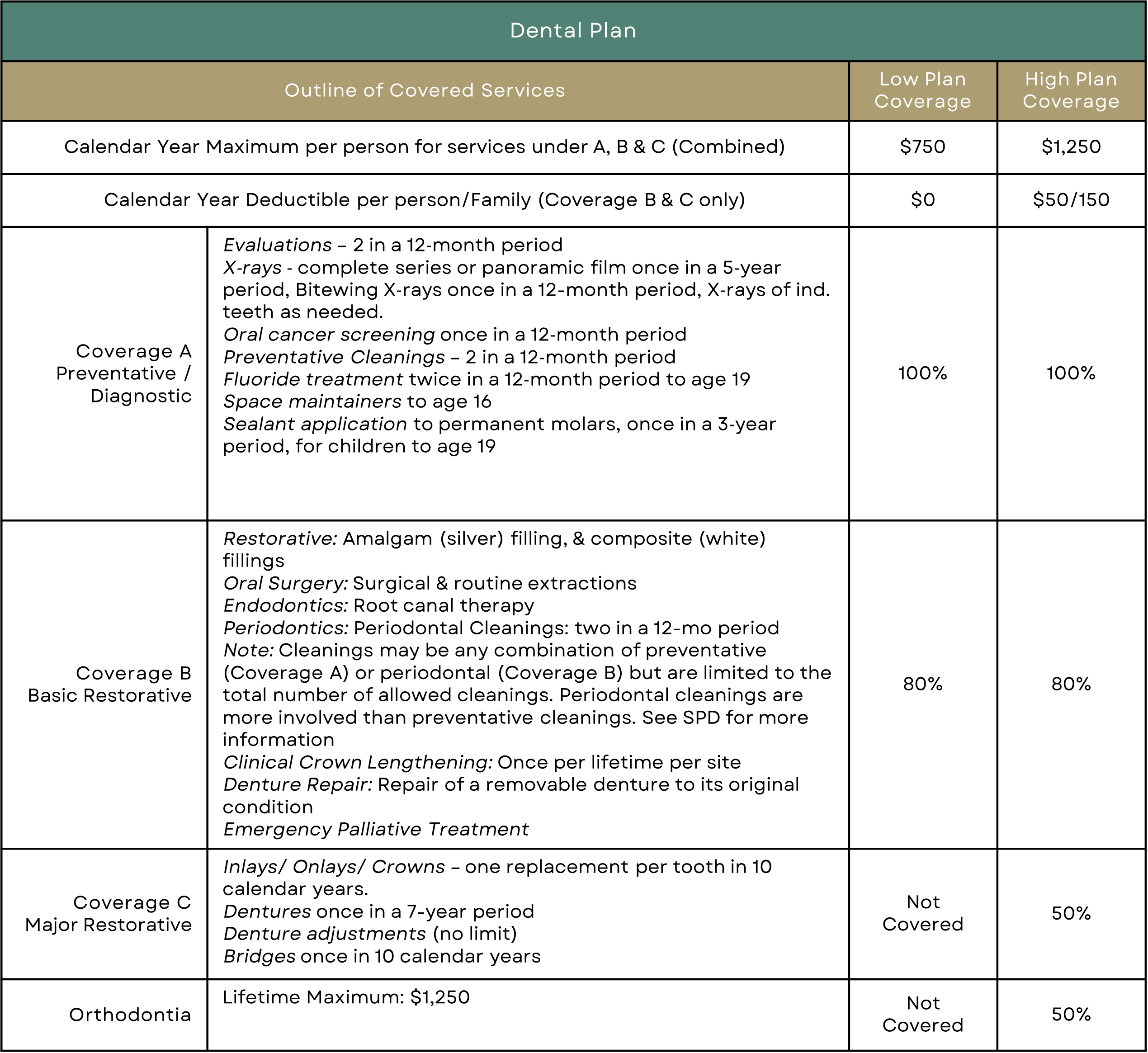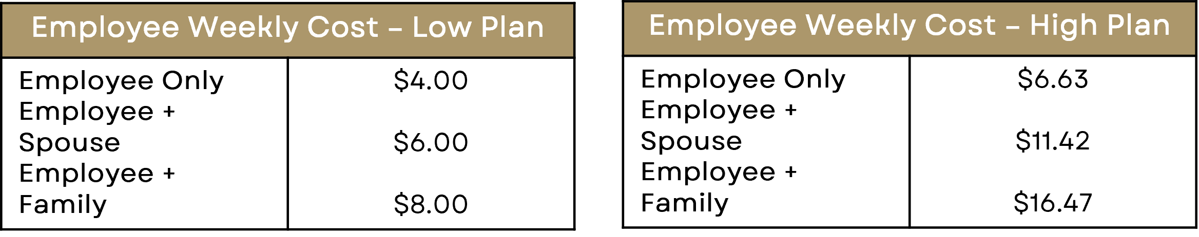 Dependent Children: 6 months to 25 years – Choice of $2,500, $5,000, $7,500, or $10,000 (one benefit amount and one rate for all eligible children in family)